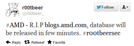 Samo dan pre nego što će objaviti vest o upadu na AMD-ov blog, grupa “r00tbeer” je na Twitter-u najavila da će njihova sledeća meta biti velika kompanija.