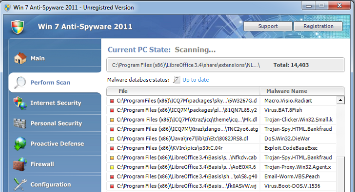 Win 7 Anti-Spyware 2011 će vam prouzrokovati velike probleme. On isključuje firewall, legitimni antivirus koji je instaliran na računaru, onemogućava prikazivanje svih obaveštenja o ugroženoj bezbednosti, i praktično preuzima potpunu kontrolu nad računarom. Za svaki legitimni program koji korisnik pokuša da pokrene, scareware izlazi sa upozorenjem da je reč o Trojancu, crvu ii nekom drugom malveru kojeg se možete rešiti jedino ako registrujete Win 7 Anti-Spyware 2011.