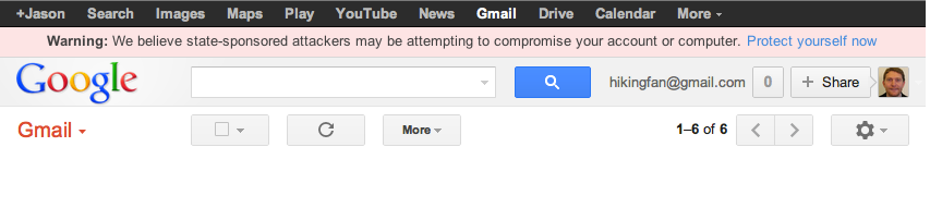 Google je u junu najavio da će ubuduće obaveštavati korisnike Gmail servisa u slučaju postojanja sumnje da su email nalozi meta napada iza kojih stoji neka država. Obaveštenje se pojavljuje bez obzira iz kog brauzera korisnik pristupa svom Gmail nalogu, i to ne samo u slučaju kada je reč o već preotetom nalogu, već i u slučaju kada postoji sumnja da je korisnik meta državnih napada.