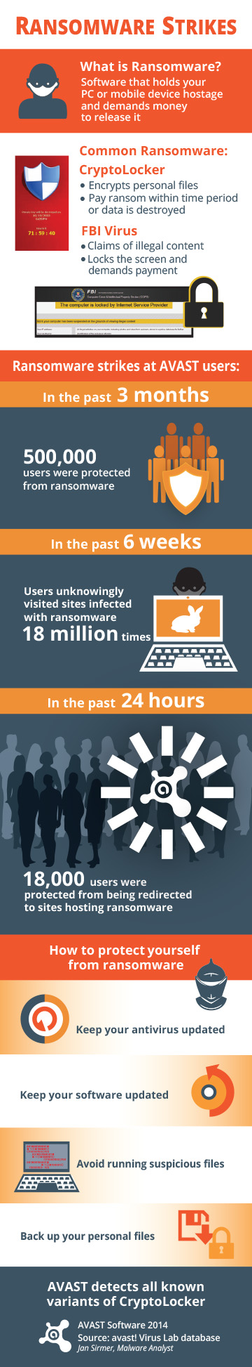 Avast nije jedina kompanija iz koje je stiglo upozorenje o alarmantnom porastu broja napada ransomwarea. Prethodno su slična upzorenja stigla i iz Symanteca i Microsofta koji su objavili da su napadi malvera kao što su Reveton, Crilock i Cryptolocker sve češći. Korisnici čiji su računari zaraženi su često bespomoćni ako nemaju rezervne kopije svojih fajlova.