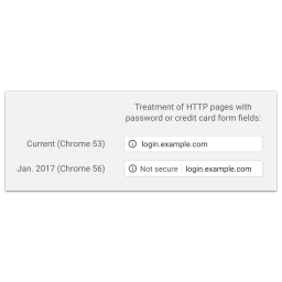 Google Chrome 56, koji je trenutno dostupan samo kao beta verzija, prikazuje karakteristično i upadljivo upozorenje kada se korisnici nalaze na HTTP stranicama sa poljima za unos lozinke ili podataka o kreditnim karticama.