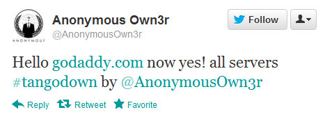 Odgovornost za napad koji je trajao nekoliko sati preuzeo je navodni član neformalne hakerske grupe Anonimusi koji se oglasio na Twitter-u sa naloga @AnonymousOwn3r, a sama grupa ogradila se od napada, što je potvrdio i napadač. Sam napadač nije naveo konkretan motiv za ovaj napad, ali se spekuliše da bi napad mogao biti zakasneli odgovor na prošlogodišnju javnu podršku kompanije GoDaddy predlozima zakona SOPA i PIPA. “Podržavajući GoDaddy, podržavate cenzuru interneta,” objavljeno je sa Twitter naloga @AnonOpsLegion koji takođe koriste Anonimusi i sa koga je napad na GoDaddy podržan.