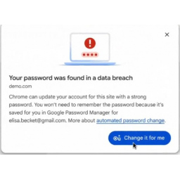 Google je najavio novu funkciju u svom pregledaču Chrome koja omogućava ugrađenom menadžeru lozinki (Password Manager) da automatski promeni lozinku korisnika kada otkrije da je kompromitovana.