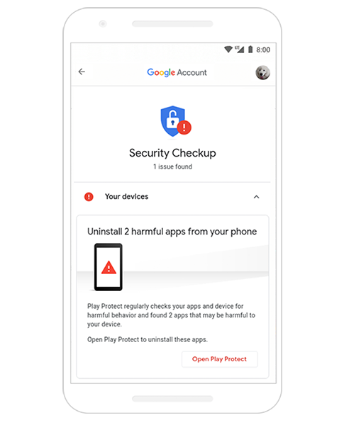 Bolje sigurnosne provere: Prošle godine, Google je ažurirao sigurnosne provere, koje su do tada bile iste za sve, uvodeći alat koji pruža personalizovani vodič za poboljšanje sigurnosti Google naloga. Nedavno je Google uveo bolju zaštitu od loših aplikacija na osnovu preporuka Google Play Protecta, kao i mogućnost uklanjanja naloga sa uređaja koji više ne koristite.