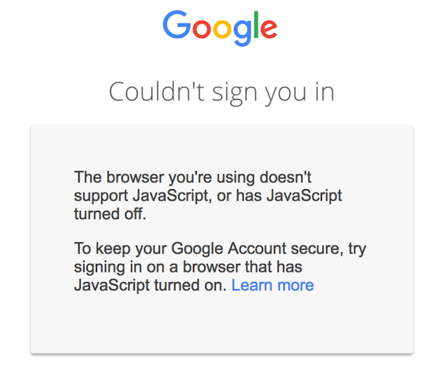 Zaštita pre prijavljivanja: Kada unesete korisničko ime i lozinku na Googleovu stranicu za prijavljivanje, Google će izvršiti procenu rizika i dozvoliti prijavljivanje samo ako ništa ne izgleda sumnjivo. Google će zahtevati da JavaScript bude omogućen na stranici za prijavljivanje, bez čega nije moguće izvršiti procenu rizika. Velike su šanse da vam je JavaScript omogućen u browseru, ali manjina korisnika odluči ipak da onemogući JavaScript. Njima Google savetuje da omoguće JavaScript prilikom prijavljivanja na Google nalog kako bi mogao da ih zaštiti.
