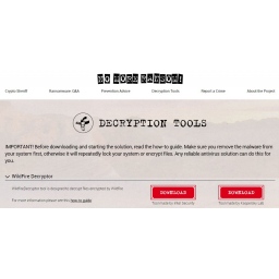 Dobra vest za žrtve ransomwarea WildFire: kompanije Intel McAfee i Kaspersky Lab objavile su dva dekriptera koji mogu da dešifruju fajlove koje je šifrovao WildFire. Oba alata se mogu preuzeti sa web sajta NoMoreRansom, koji su pokrenule ove dve kompanije u saradnji sa holandskom policijom i Europolovim Evropskim centrom za sajber kriminal (EC3).