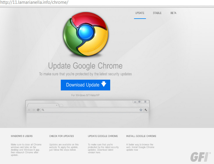 Autori malvera su veoma domišljati kada je reč o načinima distribucije malvera. Tako je objavljivanje najnovije verzije brauzera Google Chrome bila prilika za one koji su postavili lažnu stranicu koja veoma liči na legitimnu na kojoj se korisnici pozivaju da ažuriraju Google-ov brauzer. Sličnu prevaru smo videli i pre nekoliko meseci.