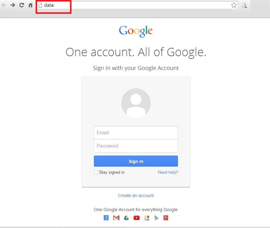Ono po čemu je ovaj napad jedinstven je ne samo izgled fišing emailova, već i to kako je napad strukturiran. Napad dobrim delom uspeva zahvaljujući URI-ju koji je formiran na maliciozan način jer većina browsera ograničava količinu podataka koji mogu biti u URI. To otežava prepoznavanje fišing napada, a s obzirom da Googleov browser Chrome ne prikazuje sve informacije u URI, fišing link je teže uočiti. Konkretan URI u ovom napadu prikazuje "Data:" u browseru umesto "Https" što ukazuje da nije reč o Googleovom sajtu.