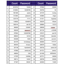 Najčešće i ujedno i najgore lozinke pronađene u ovoj bazi podataka su "123456", "123456789", "qwerty", "password" i "111111".